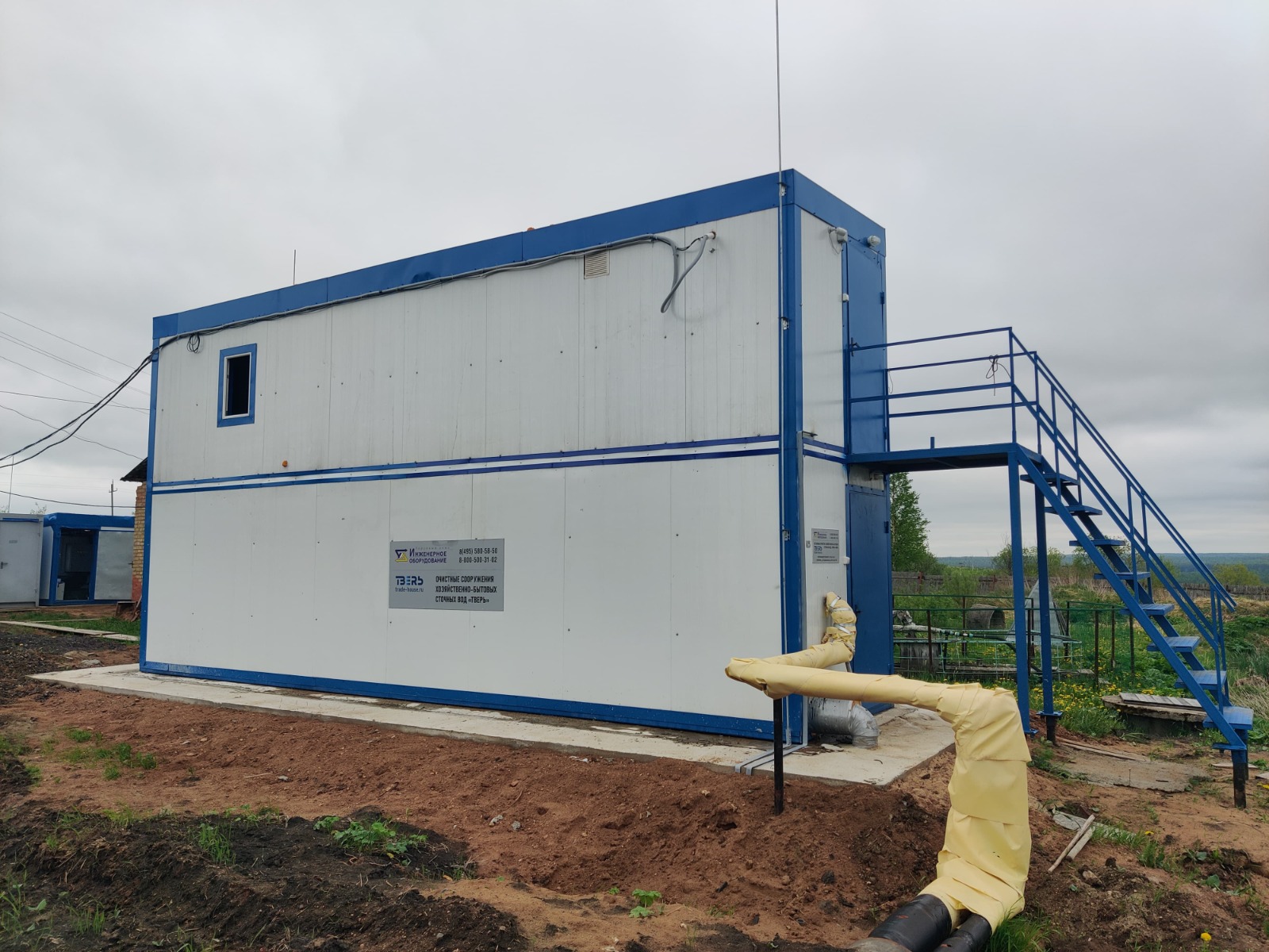 Станция очистки бытовых сточных вод "ТВЕРЬ-25БМ" представляет из себя утепленное здание из блок-модулей, установленных на фундаменте, со всем технологическим оборудованием внутри.