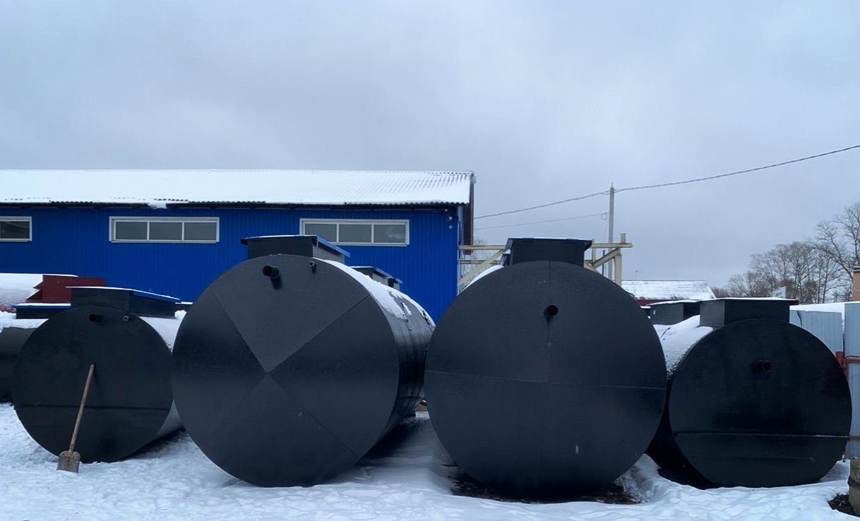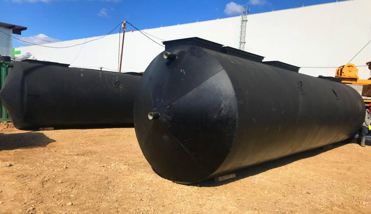 Габариты очистного сооружения: 3 емкости длиной 9800 / диаметром 2400 / весом 17700 кг.